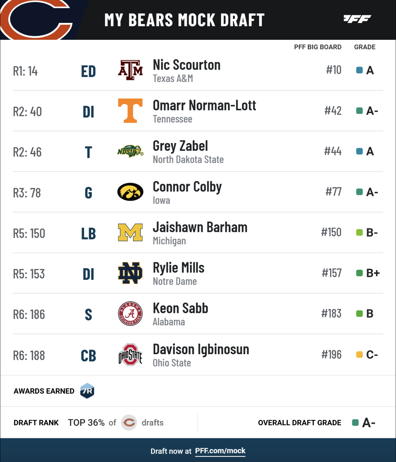 • Bears select Texas A&M Edge Defender Nick Scourton in Round 1: The pass-rusher would bolster an already solid group.