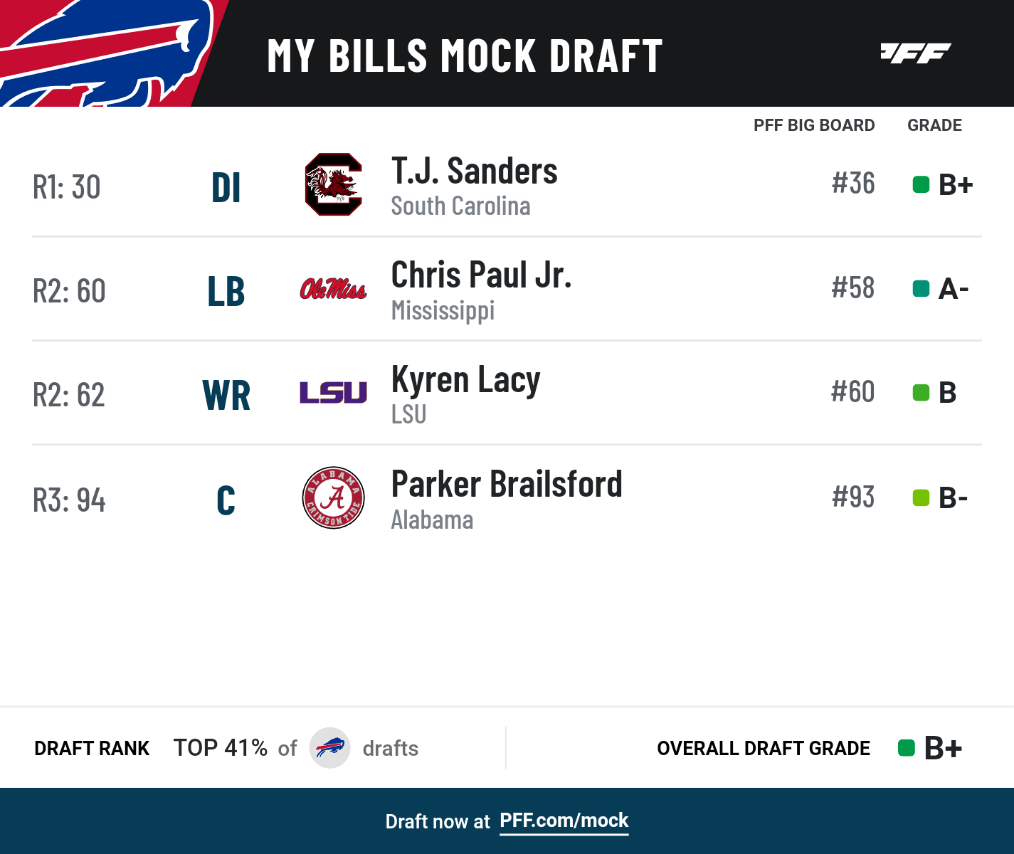 • Draft and trade for yourself: Try PFF's Mock Draft Simulator — trade picks and players and mock for your favorite NFL team.