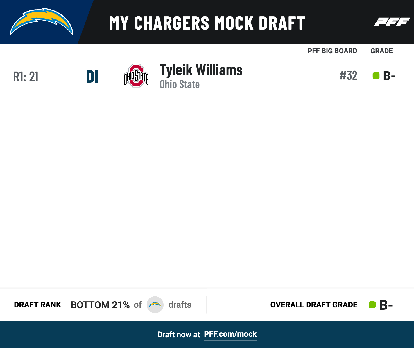 21. Los Angeles Chargers: CB Shavon Revel or Dl Tyleik Williams