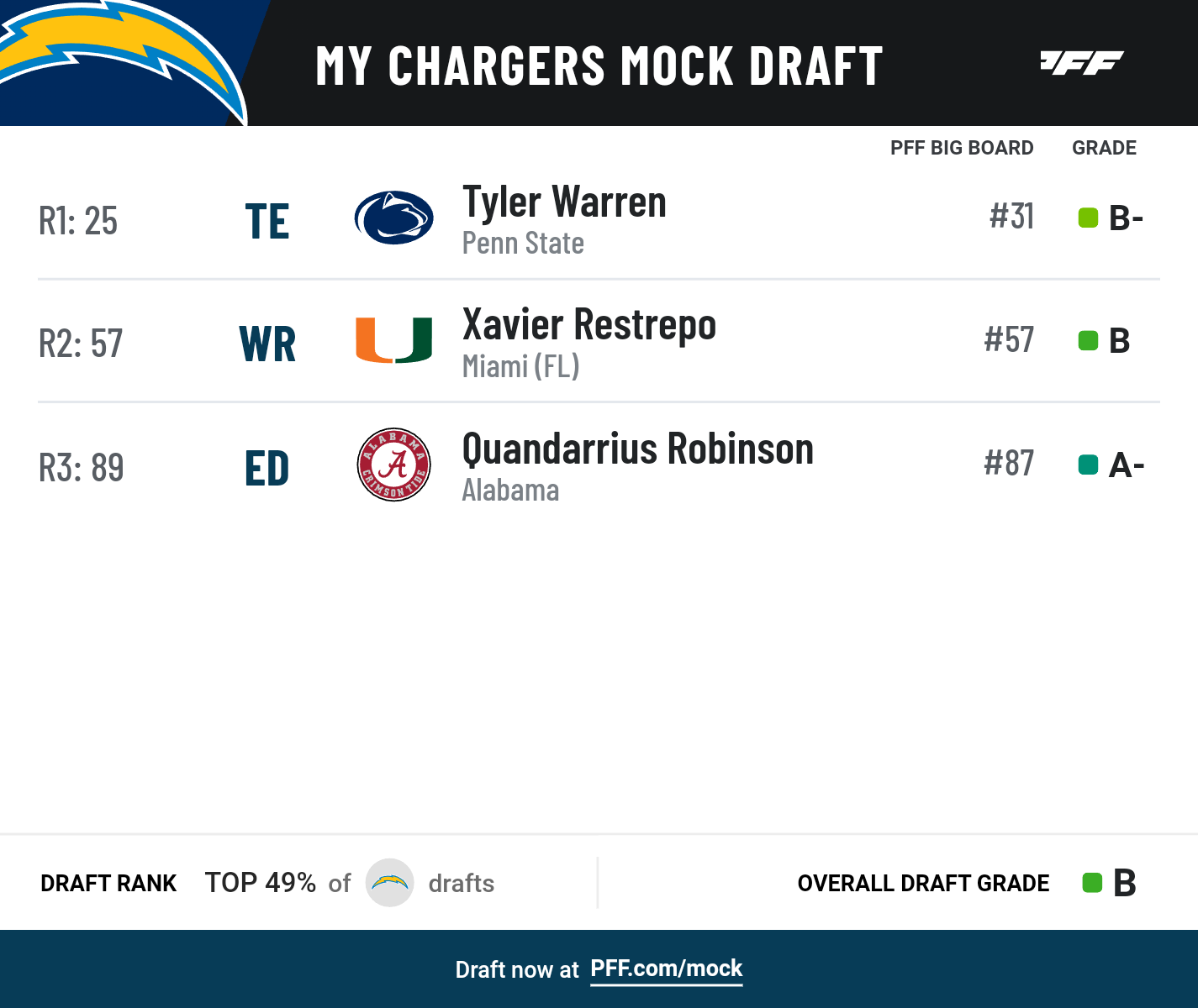 Click the links below to see your team's mock draft.
