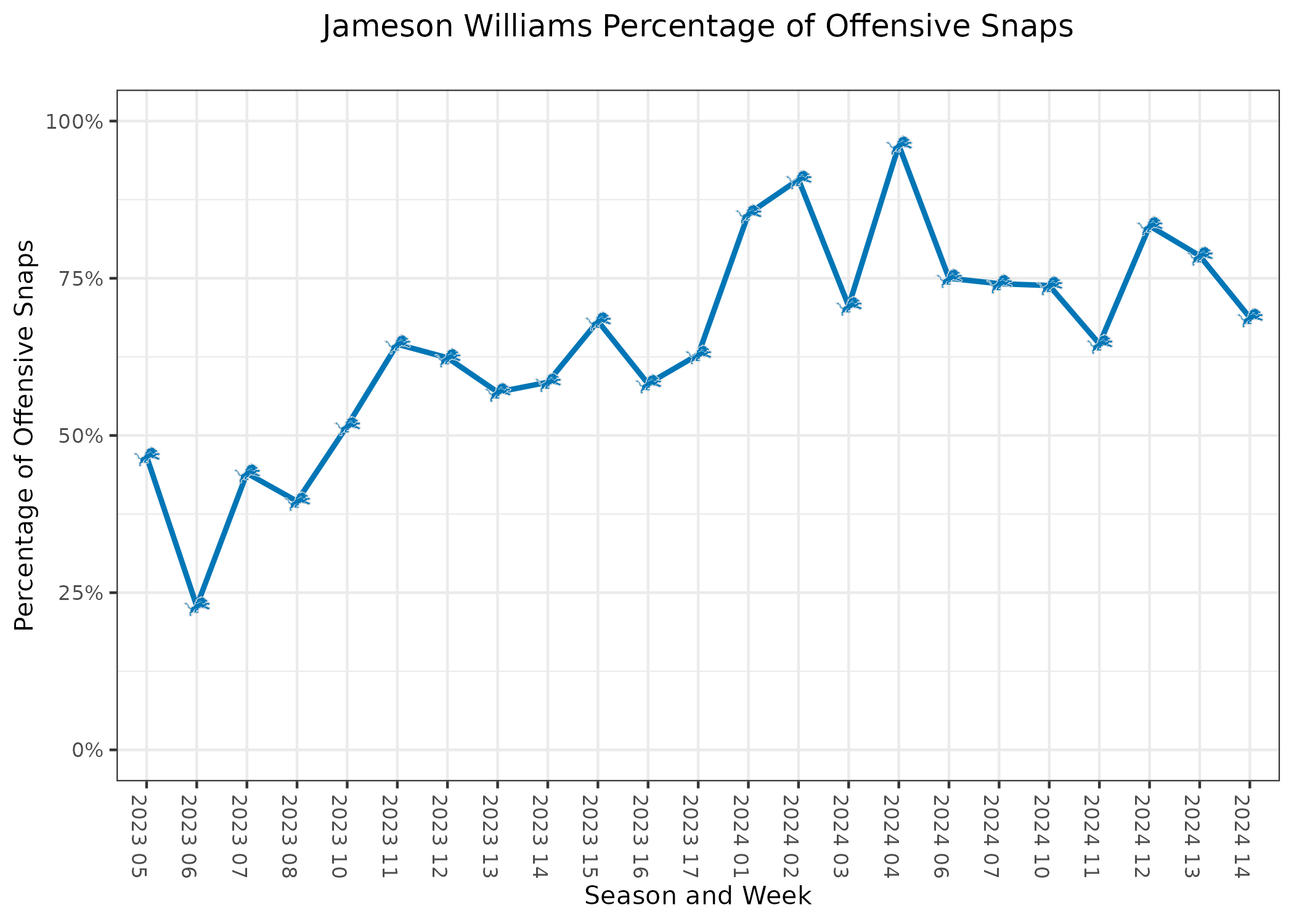 The increase in snaps in this game was a result of more usage in 12 personnel and other plays with few wide receivers on the field. He had typically played one-third of snaps, at best, in 12 personnel, mostly rotating in for Williams. Similarly, St. Brown and Williams rotated as the sole wide receiver in three tight end sets in the last month. Patrick only played two snaps from that personnel group all season prior to this week. In this game, he and Williams were in more of a 50-50 split in those personnel groups.