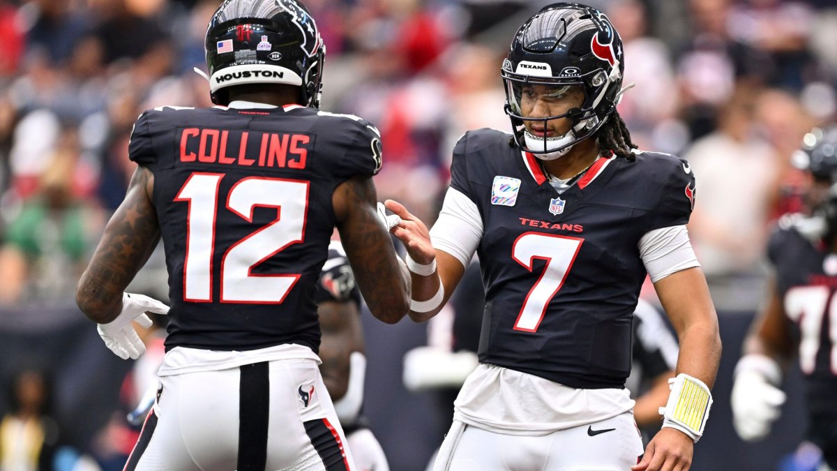 Nico Collins enters the top five: The Houston Texans wide receiver has gained at least 85 receiving yards in every game he’s played at least 50% of the Texans offensive snaps.