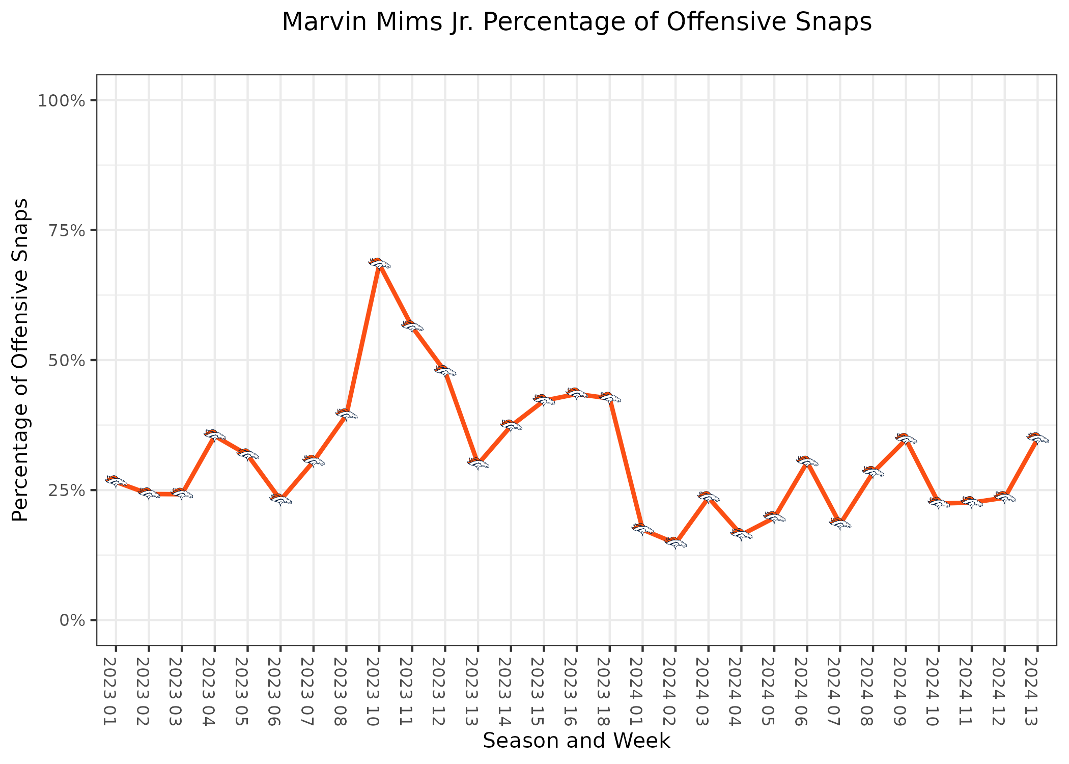 Marvin Mims Jr. has his best game of the season: Mims has been much more involved in the Broncos’ offense over the past few weeks.