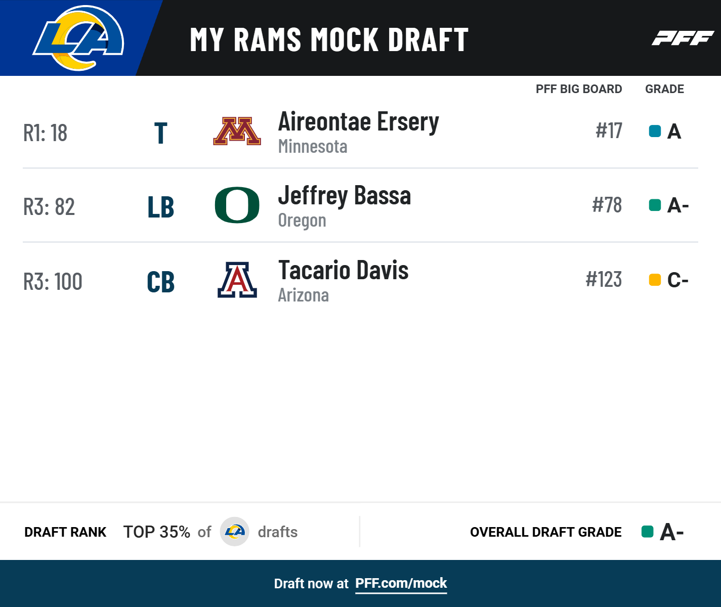 • Draft and trade for yourself: Try PFF's Mock Draft Simulator — trade picks and players and mock for your favorite NFL team.