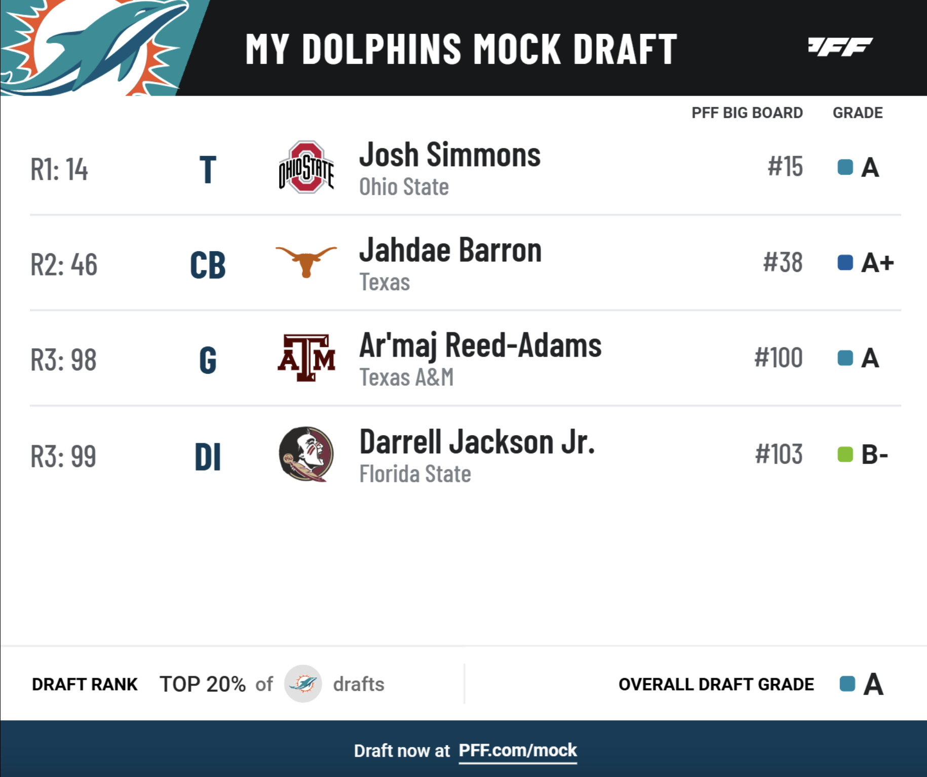 • Draft and trade for yourself: Try PFF's Mock Draft Simulator — trade picks and players and mock for your favorite NFL team.